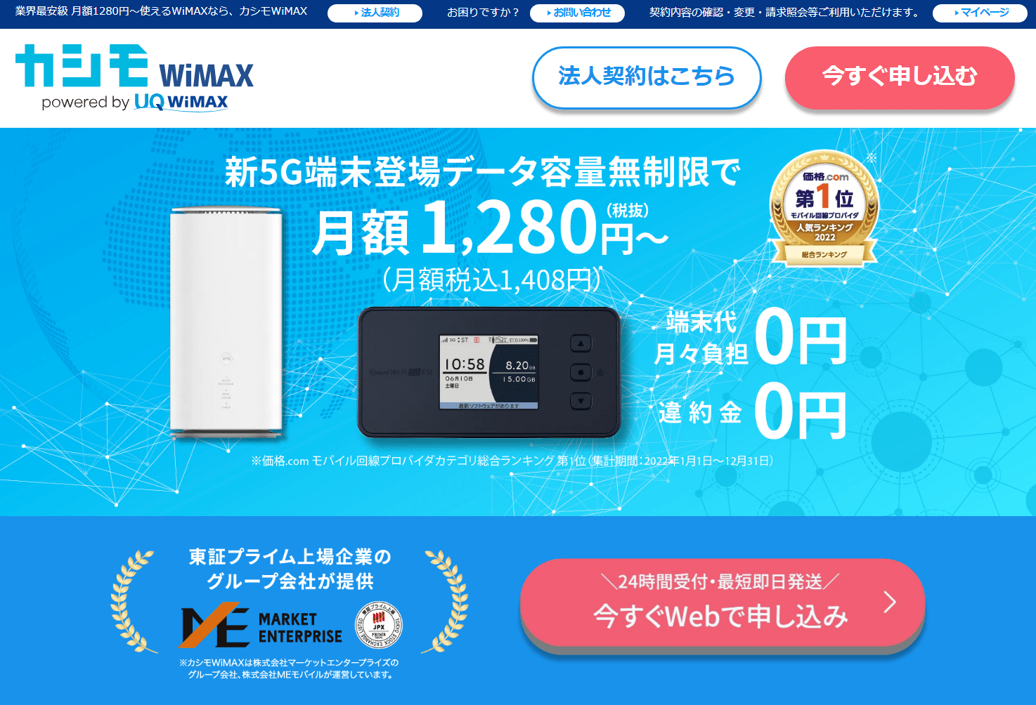本記事を読んで気に入ったら、カシモWiMAXの申し込みを検討してみてください。